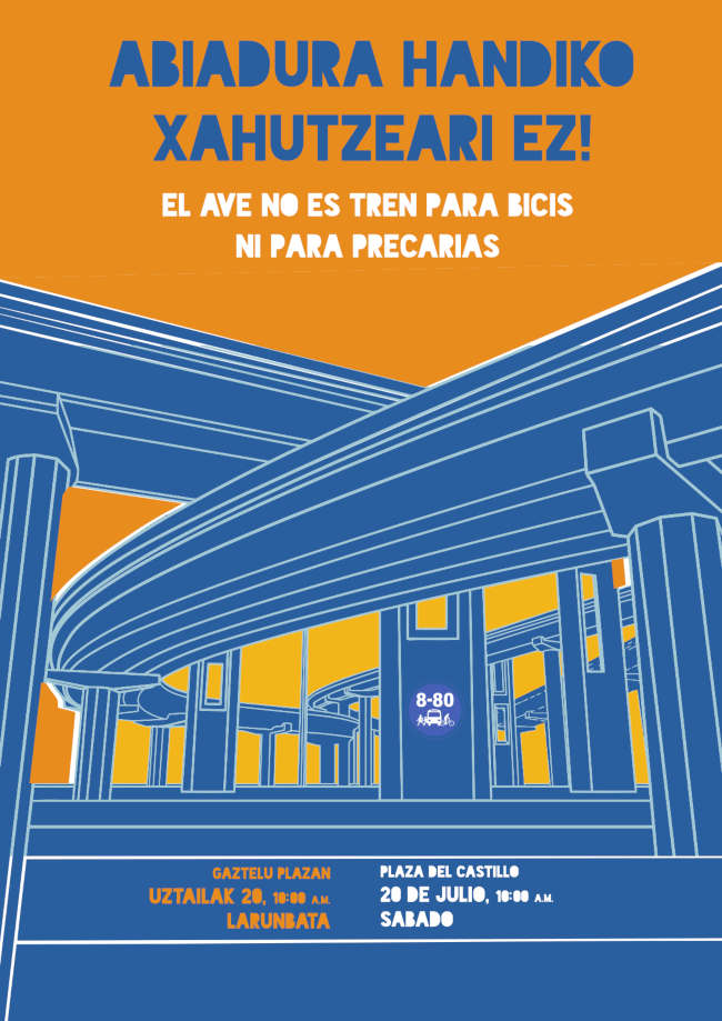 Estatuko Con Bici erakundeak urtero bizi martxa bat antolatzen du udan. Aurtengoa Nafarrotik igarotzen ari da. Datorren larunbateko etapa, hilak 20koa, goizeko 10etan Iruñeko Gaztelu plazatik abiatuko da Abiadura handiko xahutzeari ez lemapean. Iruñeko hainbat kale zeharkatu ondoren Sanduzelaiko tren geltokitik pasatuko da eta handik Lizarrara segituko dute.Bezperan, ostiralarekin, Gazteluko plazatik ere , gaueko bizi martxa bat abiatuko da gaueko 10:15ean Con nocturnidad y alevosia lemapean.Atxikitako dokumentuetan dituzue bi deialdien kartelak zein Renfeko zuzendariari idatzitako eskutitza.
