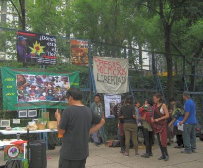 La compañera Lourdes Mejía, madre de Carlos Sinuhé Cuevas Mejía, nos platicó de su situación actual. Dijo: “Estamos aquí en esta lucha. Ya tenemos varios años en que nos conocemos…Creo que todas las participaciones van en el sentido de denunciar la dinámica que el gobierno sigue para justificar los encarcelamientos de los compañeros, los asesinatos, las desapariciones”. Carlos Sinuhé fue ejecutado extrajudicialmente en Topilejo el 26 de octubre de 2011 después de recibir varias amenazas. Durante cuatro años y medio, Lourdes ha insistido en que las autoridades esclarezcan el asesinato de su hijo, pero hace dos meses la Fiscalía de Homicidios del DF le informó que no hay nada más que se puede hacer. En lugar de cumplir con su responsabilidad, las autoridades del DF, a través de varios medios comerciales, la han agregado a la lista de activistas criminalizados por la ocupación del Auditorio Che Guevara – un atropello más contra la justicia.