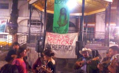 Envió un mensaje Miguel Ángel Peralta Betanzos, uno de los 12 presos y presas de la Asamblea Comunitaria de Eloxochitlán de Flores Magón, que se encuentran encerrados en distintos penales de Oaxaca. Su hermano David dio un poco de historia de la lucha en el pueblo y leyó la carta de Miguel, que dice en parte: