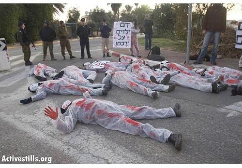 bloquearon la entrada de la base aerae de "Sde Dov", cerca de Tel-Aviv, en protesta por los bombardeos que las tropas hebreas realizan sobre la Franja de Gaza.