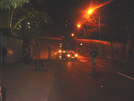 (vale la pena rescatar la cantidad de sapos que habían. Logramos ver una micro de carabineros donde habían una gran cantidad de civiles. Cuando íbamos a fotografiar, las luces dentro de la micro las apagaron)