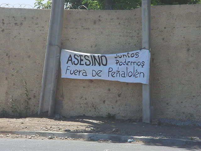 2:50: Los manifestantes de apoco comienzan a retirarse, sin dejar de gritar y Portar pancartas como "Asesino Pudrete". "Asesino Fuera de peñalolen" o "asesino fascista" . Carabineros anota las patentes de quienes han dejado sus autos a un costado de la calle para manifestar su repudio