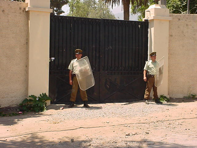 Imagenes afuera de la carcel donde debera cumplir condena luego de ser responsable del organo represivo, la dina: