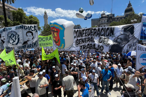 “Estamos viendo cómo llegan los compañeros y evaluando el camino para llegar porque los frenan”, comentaron en la columna de Conadu, ubicada junto a las CTA sobre Diagonal Norte. Enseguida, un tuit de la CGT denunció la maniobra del gobierno. “Repudiamos enérgicamente el accionar de la Gendarmería Nacional, cuyos agentes están deteniendo micros en los accesos e impidiendo el traslado de miles de manifestantes hacia la movilización”, señalaron en la cuenta oficial de X.