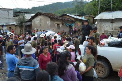 Yeretzin: En primera, que las carreteras están muy mal, yo he ido subiendo las fotos a la página del evento. Y es la sociedad civil la que está reparando los caminos, como puede. Después los atropellos y la negligencia de parte del gobierno. En una foto se puede observar que un militar solo se dedica a sacar fotos, mientras que los miembros de la CRAC están trabajando y descargando el acopio, es decir que los militares no ayudan. Esa situación se dio en Tlapa de Comonfort. La gente nos reporta que los helicópteros del gobierno federal solo llevan reporteros y autoridades, pero no llegan con víveres o ayuda.