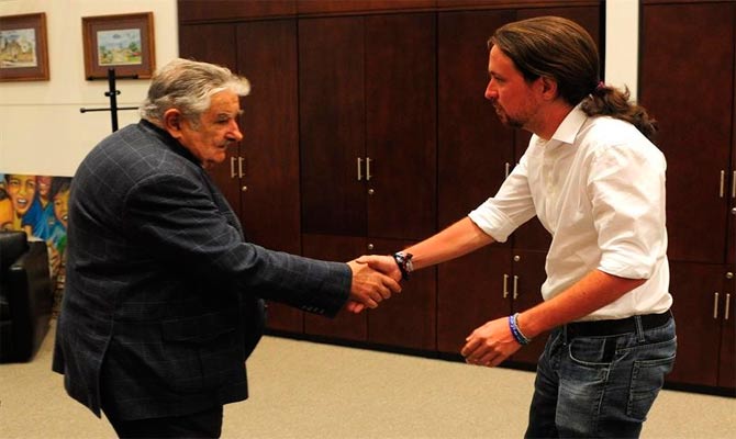 Pepe Mujica con el líder del partido socialdemócrata español Podemos