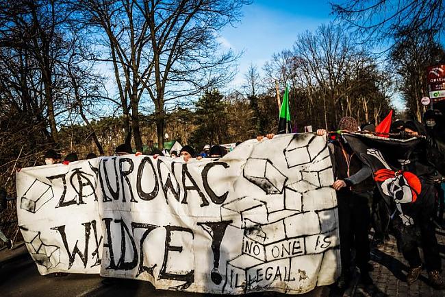 Independientemente de si son centros de concentración de migrantes cercados con alambre de púas o muros llenos de aparatos electrónicos a lo largo de las fronteras estatales, la lógica de estas acciones -cercar, separar, pero también clausura, encarcelamiento- se basa en un mecanismo represivo de protección creado por el saqueo y explotación del capital acumulado. La lucha contra las fronteras no puede abstraerse del resto de los instrumentos estructurales e interconectados de la represión capitalista tales como las divisiones de clase, raza y género o la jerarquía patriarcal. Trazando los límites dentro de nosotros, fortaleciendo conflictos y antagonismos, el capital juega y gestiona nuestras vidas en el marco de su política de identidad. La discriminación del “Otro” es también discriminación de lo diferente en nosotros mismos. El caso del muro, como una lente, se enfoca en los puntos conflictivos de la pseudopolítica capitalista contemporánea. Necesidad psicopática de controlar y gestionar la “biomasa humana”; ignorancia irreflexiva del sufrimiento de los demás; prejuicios racistas disfrazados y autoritarismo fascista; la patología económica de la corrupción y el lucro a toda costa con el tratamiento instrumental simultáneo de la naturaleza y sus recursos. Por eso llamamos a todas las partes interesadas en Polonia y el mundo a resistir la construcción del muro y lo que representa; contra autoridades, contratistas, accionistas e inversionistas. Hacemos un llamado a la solidaridad con los migrantes y la naturaleza dañada y la objeción al despilfarro sin sentido del dinero de los contribuyentes. Cualquier forma de resistencia es mejor que la complicidad pasiva; fomentamos acciones pequeñas, autónomas y más coordinadas para contener la construcción. Dejamos abierta la forma que tomarán estas actividades: manifestaciones, piquetes, murales, bloqueos, pancartas; en la defensa de los valores en los que creemos, no nos limitemos.