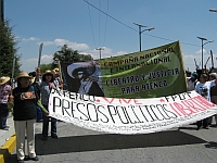 A pesar de una bofetada más del Estado, esta vez de parte de la directora del penal Jessica Landeros, quien impidió la visita y el traslado, se notó un aire fresco de esperanza en la manifestación, el que tenía mucho que ver con el regreso del compañero Bernadino Cruz Cardona del exilio la semana pasada y la salida de Pedro Flores Reyes del penal de Molino de Flores el viernes pasado.