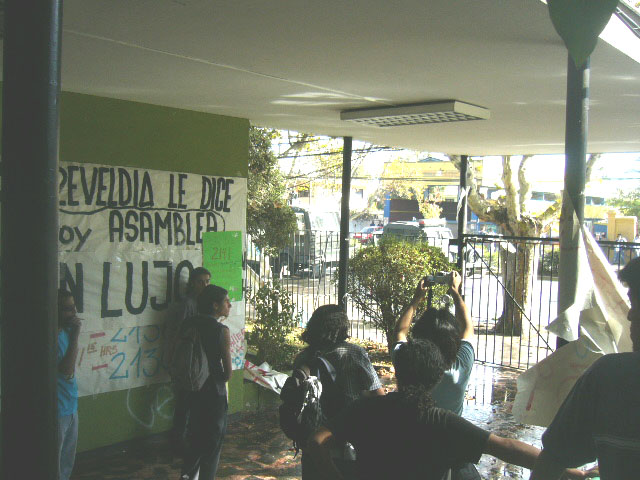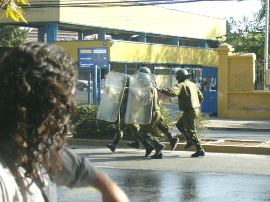 Desde temprano hoy en la sede de la UTEM del sector de Macul, se realizaron jornadas de discusión acerca de la Ley entre las distintas asambleas de las carreras. Se paró la casa de estudio, bloqueando con mobiliario los accesos a las salas de por lo menos el segundo piso. Además se entró de lleno en la confección de propaganda; lienzos, pancartas, volantes, etc, y luego l@s estudiantes salieron de su Universidad marchando hasta la intersección de Macul con Grecia lugar en donde se realizó un "mitting", fuertemente custodiad@s por decenas de carabineros y algunos vehículos policiales. Luego de algunas cuadras de marchar se volvió a la Universidad en donde hubo algunos incidentes con las fuerzas represivas.