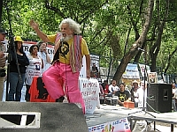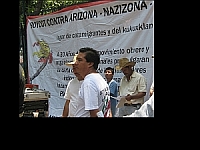 Este tema también se veía en las mantas y carteles colgados en la valla fuera de la Embajada, que traían lemas pintadas a mano como: “Boicot a Arizona- Nazizona-lugar de cazamigrantes y del Ku Klux Klan”. “Obama, Cumple tu Promesa”. Alto a las redadas y deportaciones”. “No sobran migrantes, sobran racistas”. “Alto a la xenofobia”. “Ningún ser humano es ilegal”.