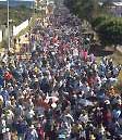 21.52: La gente corea "El pueblo, unido, jamás será vencido". La marcha sigue su camino, cerca de ciento cincuenta mil personas estan a punto de llegar al zócalo de Oaxaca, otras estimaciones hablan de hasta 300 mil. La gente sale de sus casas para mostrar su apoyo.