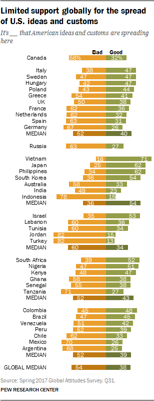 Apoyo global limitado para la expansión de las ideas y costumbrers de EEUU