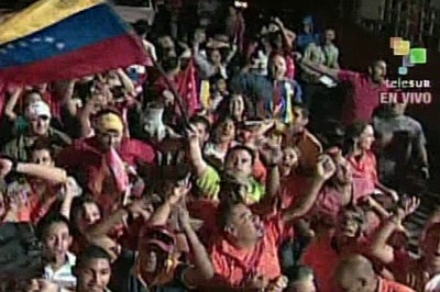 En un ambiente festivo y de completa alegría, centenares de seguidores del candidato por el Partido Socialista Unido de Venezuela (PSUV), Hugo Chávez, se concentran este domingo en varios puntos de Caracas (Capital), para celebrar la victoria.