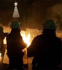 Finalmente, los disturbios volvierón ayer de madrugada. Cerca de la Facultad de Derecho de la capital, grupos de manifestantes se enfrentaron a la policía con cocteles molotov y piedras. Los antidisturbios que arrojaron abundantes gases lacrimógenos custodian el nuevo árbol de Navidad del Parlamento