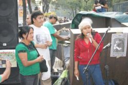 La compañera Hilda habló de la necesidad de luchar en contra de la militarización del país y por la apariencia con vida de los desaparecidos del país. También habló de la amenaza que las autonomías indígenas presentan para el capitalismo e invitó a todos a participar en una marcha-caminata en solidaridad con las compañeras y los compañeros triquis desplazados del Municipio Autónomo de San Juan Copala desde Huajuapan de León hasta el Zócalo de la Ciudad de Oaxaca el próximo 19 de diciembre.