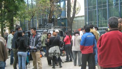 Y como un pequeño ejemplo de su solidaridad con otras luchas, les dejo con unas palabras de Kuy y Eva en un mitin para exigir justica para Acteal ante la Suprema Corte de la Nación el 21 de agosto de 2009, un poco después de que unos de los autores materiales de la matanza salieron de prisión. Kuy hizo uso del megáfono para explicar a los paseantes la exposición gráfica que representaba la matanza y sus cómplices: