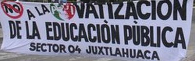 Entonces es toda una lucha que tenemos que estar haciendo en nuestras aulas, en nuestras comunidades, para que esto se revierta. Es algo muy grave. A largo plazo puede pasar como en Chile donde ya casi no hay escuelas públicas. Que la mayoría de las escuelas son privadas. Un joven tiene que estudiar y tiene que venderse a un banco incluso durante más de treinta años después de trabajar para pagar la deuda que contrajo para estudiar en la universidad. Y eso consideramos que no puede ser cierto. Con Felipe Calderón ya empezó esa política a nivel universitaria. Ya se le está dando apertura para que un joven venda su vida a un banco a través de un fideicomiso. Muy muy engañoso. Entonces hay que detener todo esto por el bien de toda la población ¿no?