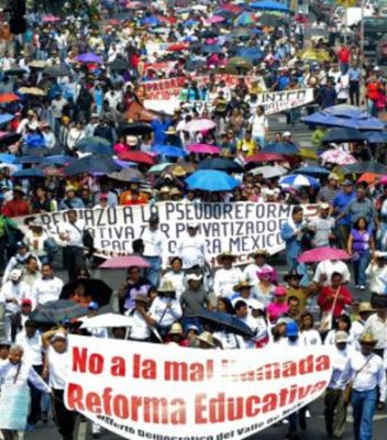 ¿Y por qué esta embestida tan grande en su contra? Es que el magisterio está poniendo en tela de juicio una estrategia que no sólo significa el fin de su trabajo como educadores, sino un golpe mortal contra la educación de las futuras generaciones de México ––una estrategia diseñada por la clase empresarial internacional en la Organización para la Cooperación y Desarrollo Económico (OCDE), mejor conocida como “el club de los ricos”. Una estrategia promovida por sus acólitos nacionales y pactada por sus servidores en la clase política de México. Una estrategia que ha resultado en cierres masivos de escuelas en Chicago, Filadelfia y otras ciudades de Estados Unidos y que ha puesto la educación bajo el control de grandes corporaciones con el desarrollo de las escuelas “charter” (de contrato) y escuelas “voucher” (de becarios) en ese país.