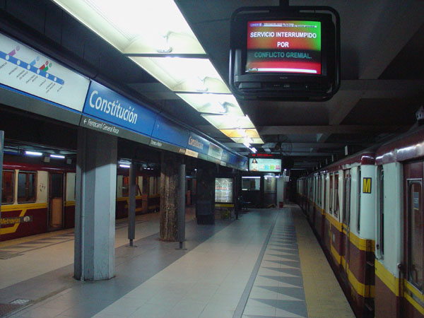 Cuando son exactamente las 15:00 hs, el paro de toda las lineas del subterraneo ya comenzó, pero en la estación Constitución quedan todavía cincuenta pasajeros esperando en el andén, como si la rutina siguiera. Los trabajadores discuten sobre la suerte de esos candidatos al naufragio. Alguien se apura para decirles que no hay mas trenes, pero otros trabajadores lo frenan. "No se los puede dejar ahí tirados" dice uno. "Esta bien - contesta otro- sacamos un coche más, pero es el último", malhumorado por el retrasar unos minutos el comienzo de la medida de fuerza. Luego de la desición, un grupo de trabajadores se organiza para ir a hablar con los pasajeros, y de paso atender a los medios que ya se agolpan contra los molinetes, que de ahora en mas serán una frontera custodiada por policias y guardias de seguridad.