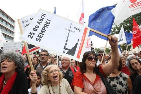 Cientos de miles de trabajadores en una poderosa afirmación de dignidad, de coraje y determinación en la defensa de los derechos. Una desmedida afirmación de resistencia ante la tentativa ilegítima de cercenar libertades fundamentales en que, a la provocación del gobierno, los trabajadores impusieran con la travesía del puente 25 de abril el ejercicio de los derechos democráticos, una nueva e importante derrota al gobierno. Una grande demostración de unidad y combatividad y fuerza por Abril, por la Constitución y por la soberanía.