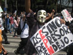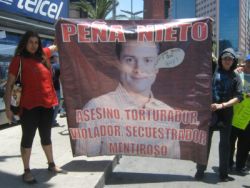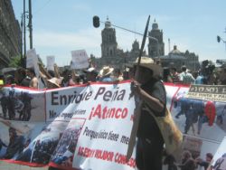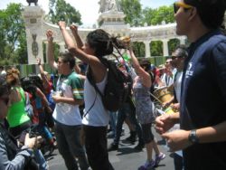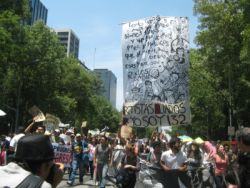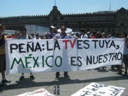 El domingo 10 de junio a las 12:30 del día, miles de estudiantes del movimiento “Yo Soy 132”, acompañados por grupos e individuos solidarios, partieron del Zócalo para el Ángel de la Independencia en una marcha de alta energía con varias batucadas en un ambiente festivo. Se escucharon gritos de “¡Fuera Peña!”, “¡Atenco no se olvida!”, “¡Se ve, se siente, Peña Nieto no será Presidente”, y “El que no brinque es Peña”, entre muchos otros. Sólo días después de la publicación de un artículo en el diario británico The Guardian sobre las tarifas cobradas por Televisa a Peña Nieto para mejorar si imagen y la campaña televisora en contra de López Obrador, las protestas contra la poderosa cadena de televisión también se volvieron más candentes. http://www.guardian.co.uk/world/2012/jun/08/mexico-televisa-cobertura-politicos